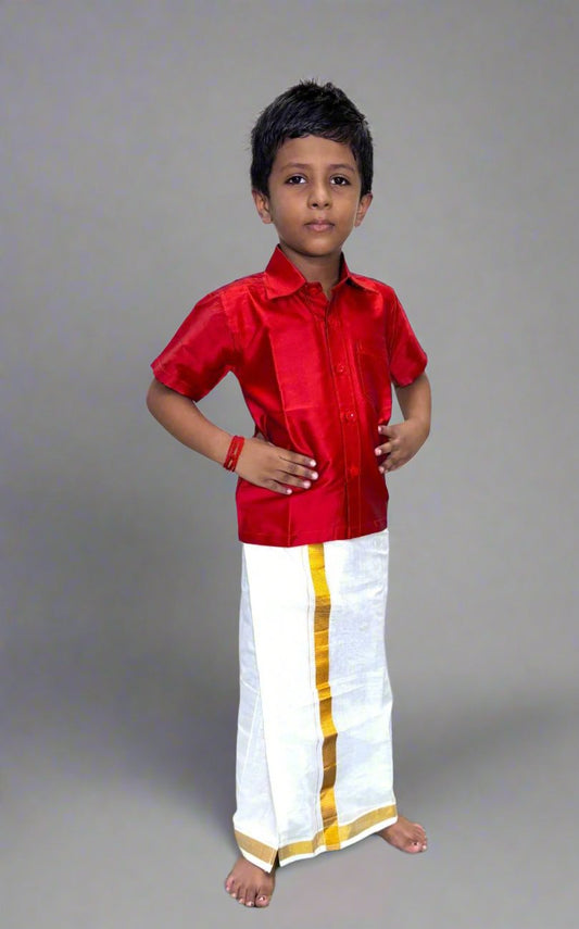 Red Shirt and Mundu Set For Boys
