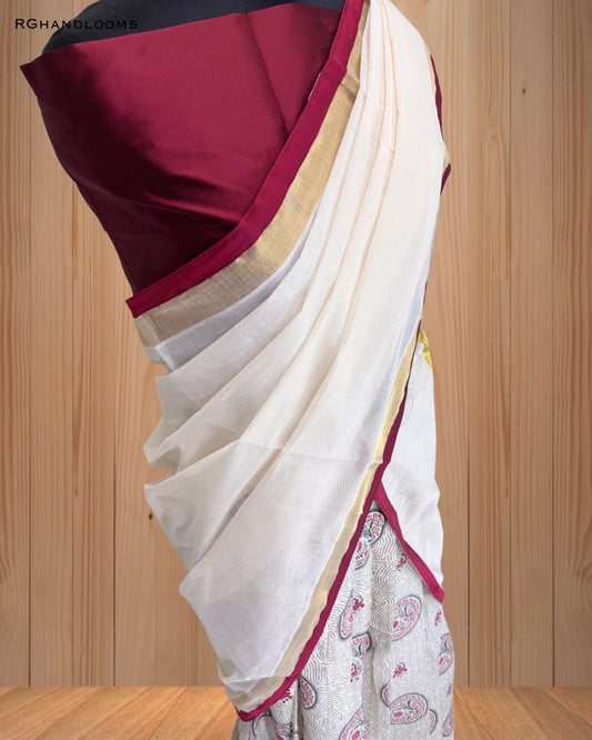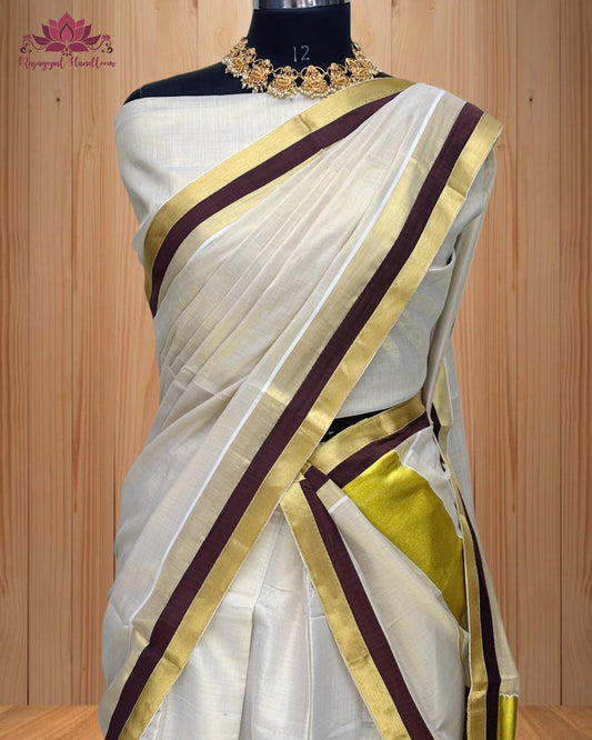 Kerala traditional Dhavani set, Red and golden Border
