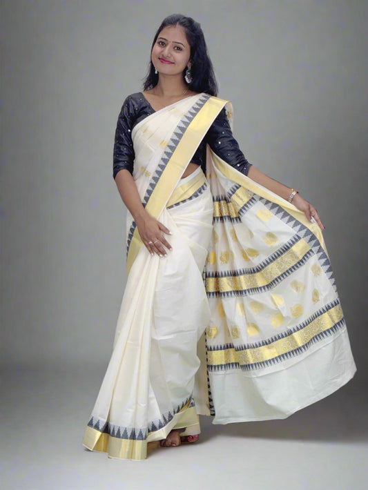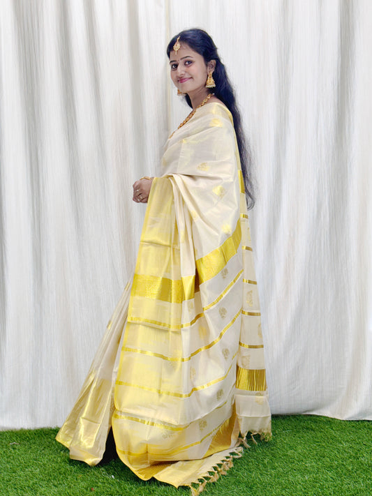 Tissue Saree with Golden temple Border Saree