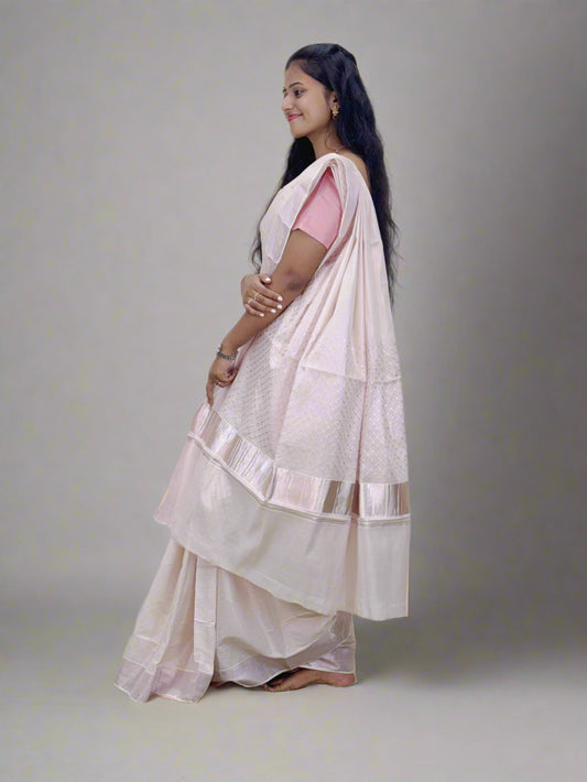 Handloom Silk Saree with Floral Design and Pink Border